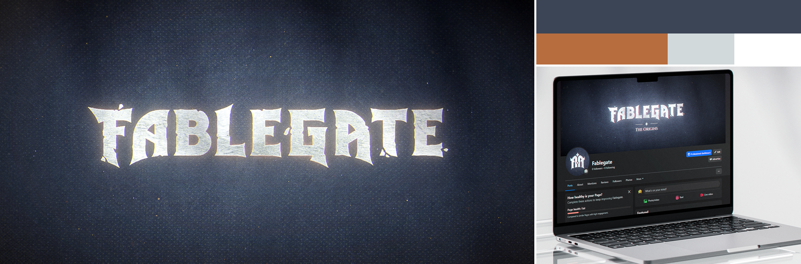 J’ai conçu un logo typographique inspiré de l’univers visuel de la fantasy médiévale. La typographie intègre un travail conceptuel autour de la lettre "A". Le nom Fablegate contenant deux "A", leur association forme la silhouette d’une porte à deux battants. Le tout a ensuite été poussé plus loin graphiquement pour obtenir une icône distinctive et unique.