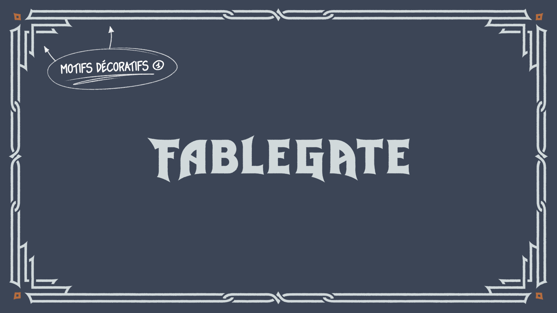 L’objectif était de concevoir des outils graphiques (logotype et ornements) que Fablegate pourrait utiliser et adapter sur ses différents supports et produits, afin d’assurer une cohérence visuelle entre les différentes éditions.