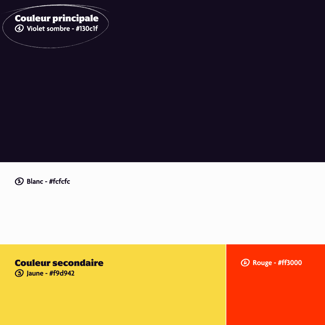 La palette de couleurs du logotype The Viper repose sur trois teintes : le jaune, représentant la couleur que The Viper utilise lors de ses parties, renforçant ainsi le lien direct avec son image de joueur ; le violet sombre, une couleur élégante et profonde qui contraste avec le jaune ; et enfin le rouge, employé de manière occasionnelle pour apporter du relief et capter l’attention.